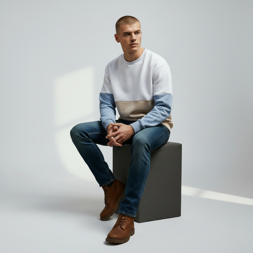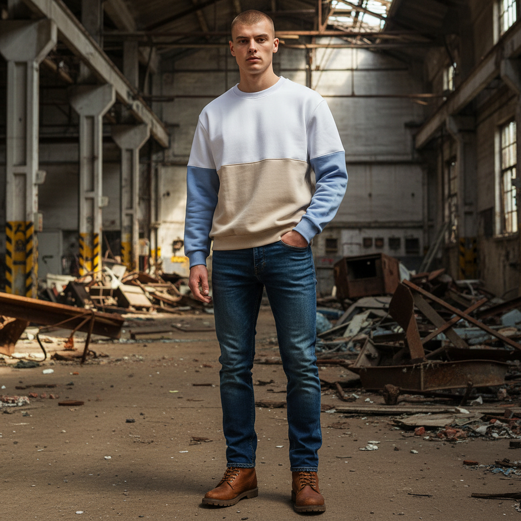 Crew neck, long sleeve Men’s sweatshirt, produced from 3 thread thick fabric. Ribbed cuffs and hem.
